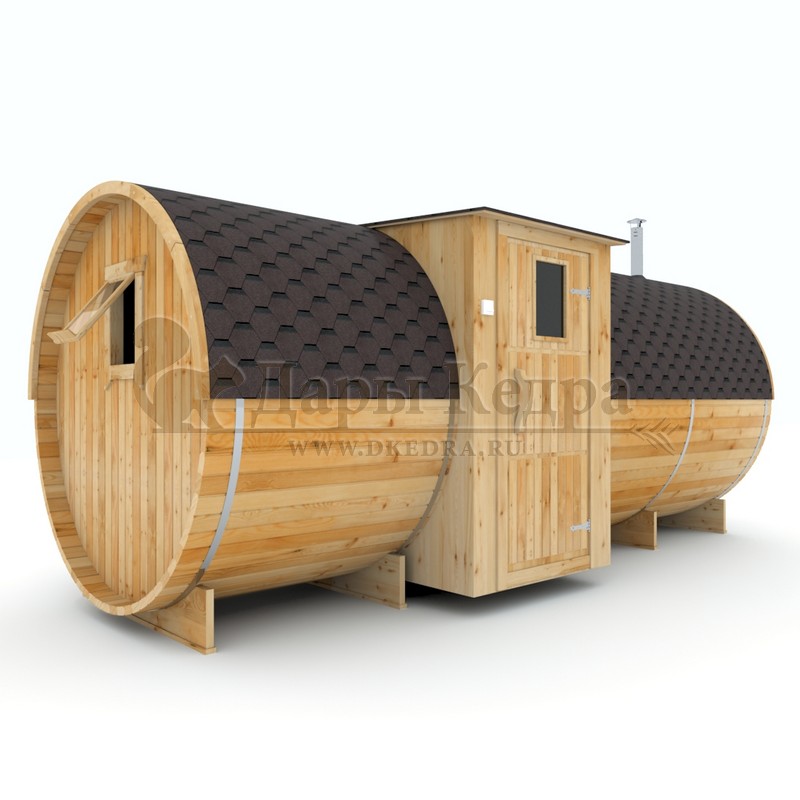 Баня-бочка круглая из кедра с верандой (все размеры)
