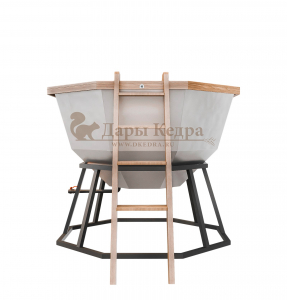 Банный чан на подставке изготовлен из пищевой стали. Представляет собой большую ёмкость в виде чаши, при нагревании которой можно париться на свежем воздухе. Чан установлен на устойчивую металлическую подставку и оборудован кедровым бортом, скамейками, подспинниками, трапом для ног и приставной лестницей. Нагревание банного чана происходит от обычного костра. Если оборудовать данную модель печью, то банные процедуры можно принимать даже зимой.