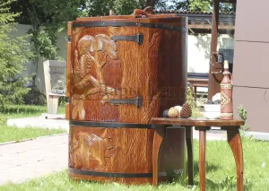 Художественная резьба это ручная работа, выполняется разными мастерами и каждый рисунок неповторим. Вы можете выбрать предложенные варианты резьбы или подобрать изображение и мы предложим вам подходящий эскиз. На сайте представлены наши работы в качестве примера. Каждая резьба рассчитывается индивидуально и может быть нанесена на любую модель фитобочки.