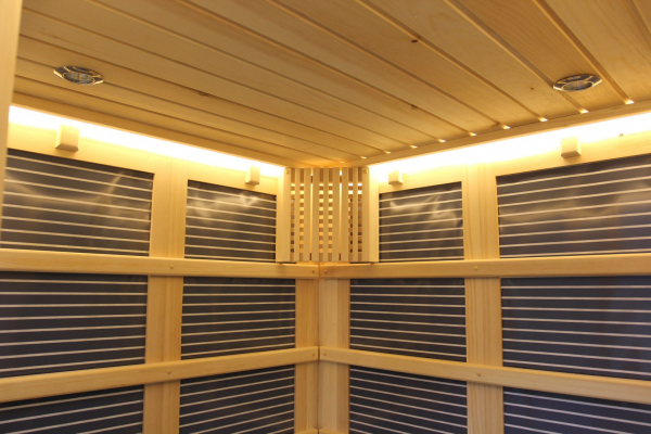 Это специально оборудованная кедровая кабина для прогрева тела человека сухим теплом. Воздух в таких парных не нагревается. Инфракрасные лучи воздействуют на тело, равномерно прогревая мышцы, суставы и органы. Карбоновые излучатели, встроенные в стены кабины, обладают мягким прогревом, что полностью исключает возможность ожога. Работает кабина за счет электричества. Двухместная инфракрасная сауна с карбоновыми излучателями подойдет как для домашнего использования, так и для коммерции.