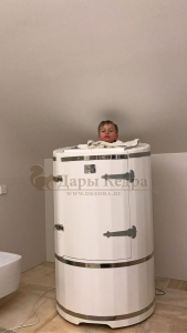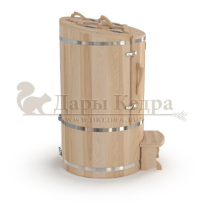 Готовый комплект - это полностью укомплектованный набор с фитобочкой для процедур парения. Круглая модель наиболее компактна и мобильна. Толщина стенок составляет 40-45 мм, что позволяет увеличить срок службы изделия. Бочка оборудована откидными створками, дверцей и отверстием для головы. Верхний скос делает положение головы более комфортным и улучшает обзор. Во время парения человек сидит внутри кедровой бочки, а голова находится снаружи. Благодаря этому исключается возможность перегрева. Подлокотники из кедра, встроенные ручки на створках и двери делают эксплуатацию более удобной.