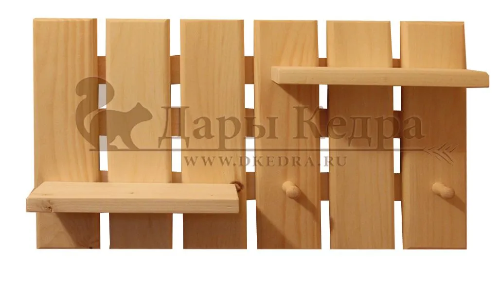 • Вешалка с полкой из кедра Порадуйте себя и своих близких вешалкой из натурального дерева. Она станет оригинальным нужным подарком, украсит прихожую, баню или станет дополнением к основному подарку для новосёлов. Возможно изготовление по Вашим размерам. Покрытие в цвет, браширование, дополнительное оформление - также по Вашему желанию (в стоимость не входит).