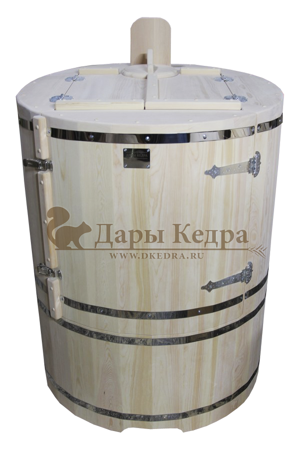 Кедровая бочка (фитобочка) «Фирменная» Это эксклюзивная фитобочка любой модели и комплектации с резьбой вашего логотипа или фирменного знака. Просто приготовьте эскиз рисунка, и наши мастера перенесут его на изделие. Авторский рисунок на фитобочек придаст оригинальность вашему дому или салону красоты, подчеркнёт вашу индивидуальность и непревзойденный вкус. Художественная резьба это ручная работа, выполняется разными мастерами и каждый рисунок неповторим. Вы можете выбрать предложенные варианты резьбы или подобрать изображение и мы предложим вам подходящий эскиз. На сайте представлены наши работы в качестве примера. Каждая резьба рассчитывается индивидуально и может быть нанесена на любую модель фитобочки. Парение в фитобочке благотворно влияет на организм в целом: повышается иммунитет, выводятся шлаки и токсины, улучшается работа органов тела и состояние кожи. Обязательно обращайте внимание на размер дверных проемов вашего помещения. Если они меньше 78 см, то закажите разборную модель!