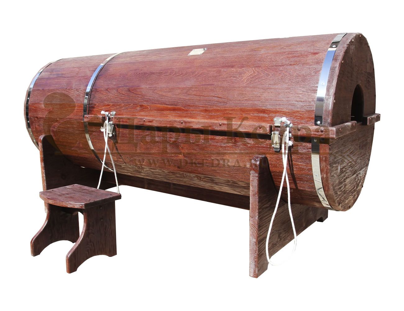 Кедровая бочка (фитобочка) двухместная «Люкс» Это двухместная модель фитобочки с эксклюзивной резьбой по нашим эскизам или вашим индивидуальным заказам. Выберете один из представленных ниже рисунков или подготовьте свой, и наши мастера перенесут его на изделие. Авторский рисунок на фитобочке придаст оригинальность салону красоты, подчеркнёт вашу индивидуальность и непревзойденный вкус. Художественная резьба это ручная работа, выполняется разными мастерами и каждый рисунок неповторим. Вы можете выбрать предложенные варианты резьбы или подобрать изображение и мы предложим вам подходящий эскиз. На сайте представлены наши работы в качестве примера. Каждая резьба рассчитывается индивидуально и может быть нанесена на любую модель фитобочки. Эксклюзивная фитобочка может быть представлена в разной цветовой гамме: После того, как цвет фитобочки выбран, необходимо определиться с вариантом резьбы (или предложить свой): Фитобочку можно также декорировать канатной веревкой в места обручей из нержавеющей стали (оплачивается дополнительно).