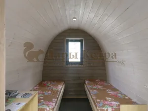 Кемпинг дом изготовлен из хвойных пород древесины. Кровля из мягкой черепицы обеспечивают защиту от осадков.
