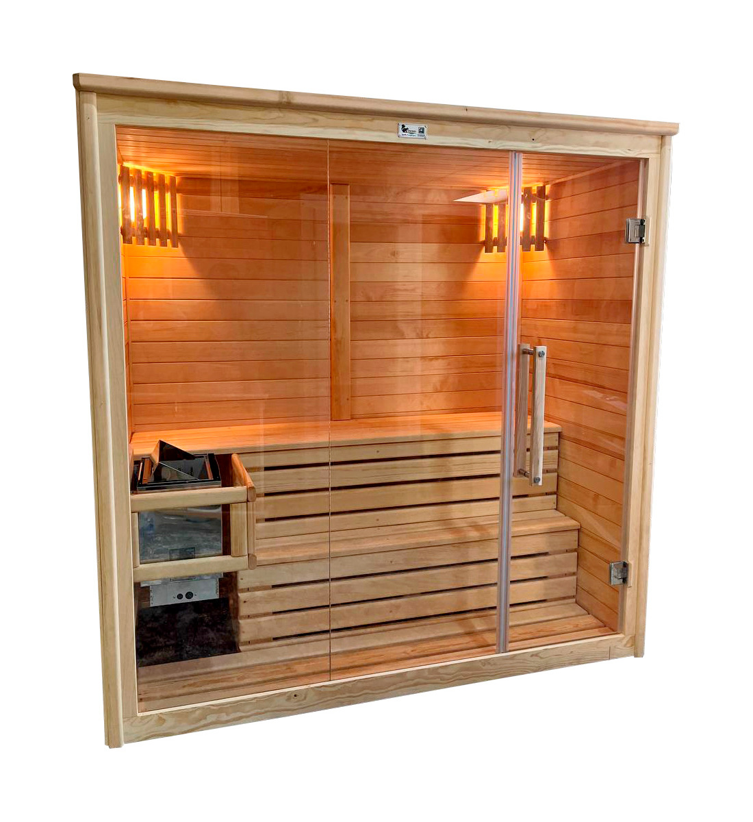 Двухместная прямая финская «Элит» сауна кабина из кедра и липы с электрокаменкой Это специально оборудованная готовая деревянная кабина для сухого и влажного парения. Электропечь нагревает пространство внутри и позволяет сбрызгивать камни водой, слегка увлажняя воздух. Такая процедура позволяет избежать перегрева. Каркас сауны выполнен из массива кедра, снаружи и внутри обшит липовой вагонкой сорта «Экстра» и имеет теплоизоляционный слой. Также двухуровневый полок идёт из кедра для обогащения внутри кабины полезными фитонцидами, а в сочетании с противовирусными свойствами липы сауна становится настоящим источником здоровья. Закаленный цельностеклянный фасад с безрамной дверью является термостойким и придает конструкции легкость и обзорность. Можно добавить боковую стенку, как на образце 3D модели из термостекла за дополнительную плату. Дополнив кабину панелью из гималайской соли или можжевеловым панно с подсветкой вы получаете красивейший объект в интерьере. Финская сауна с электропечью подойдет, как для домашнего использования, так и для коммерции. Доставляется в разборном виде щитами, собирается по инструкции с помощью шуруповёрта.
